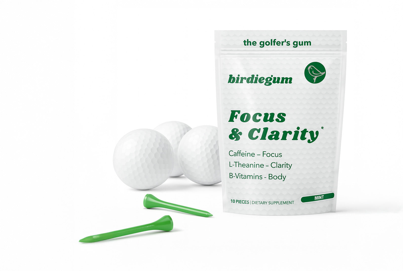 BirdieGum is a functional chewing gum formulated specifically for golfers who want to boost focus and reduce nerves on the course. Each piece contains a balanced blend of caffeine, L-Theanine, and B Vitamins — ingredients shown to support cognitive clarity, calm alertness, and sustained energy without the jitters or crash. Just chew a piece 10–15 minutes before your round or tough shot, and feel the mental edge kick in.
